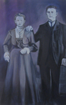 2016geschilderd naar foto's gevonden uit fotodoos Oma Broersen-Schaper Volgens mijn achternicht Tiny Ruijter zou de man op de foto Cees Ruijter zijn, een broer van Dina Maria. In haar boek Ruijter, achteraf beschouwd, schrijft zij hier over en toont de foto Echter heeft mijn nicht Mariette Broersen aan haar vader Jan Broersen gevraagd wie deze man was en volgens haar vader was het zijn opa: Jacob Schaper. Mariette heeft achter op de foto geschreven: Jacob Schaper! Ik neem aan dat het Jacob Schaper is met als bewijs de naam achterop de foto! Jacob Schaper en Dina Maria Ruijter op jongere leeftijd, naar twee samengevoegde fotoportretten gevonden in de fotodoos van mijn oma Broersen-Schaper