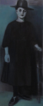 2017Vermoede in 1e instantie een familielid van vaderskant, bij nader onderzoek bleek de naam Marie de Groot op achterkant foto te staan. Vond deze foto in een doos met oude foto's nog van mijn oma Broersen-Schaper. Tijdens maakproces werd het gezicht meer Charly Chaplin achtig, jammergenoeg ben ik toen niet gestopt. Heb weer een nieuw doek opgespannen en gebruikte foto van 1e versie als uitgangspunt.