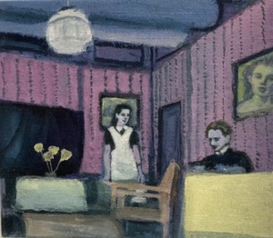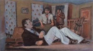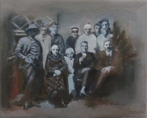 Vroeger speelde mijn vader bij de toneelvereniging E.M.M. [eendracht maakt macht] in het Noordhollandse dorp 't Zand. Wij mochten als kinderen kijken naar de voorstellingen, soms de affiche's ontwerpen en in de pauze loten verkopen. De zaal in het plaatselijke café De jonge prins zat altijd helemaal vol publiek. Het boek 'Honderdjarig bestaan E.M.M.' [tekst en research Ton Hoogeboom] inspireerde mij tot een serie tekeningen en schilderijen.